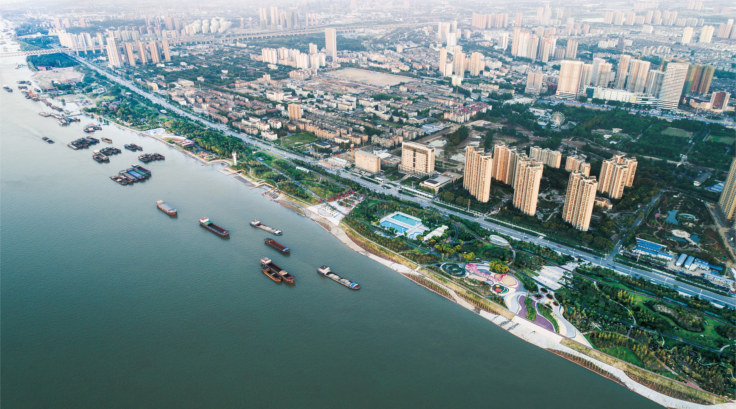 由中國一冶承建的武青堤工程是全國首批海綿城市試點(diǎn)項(xiàng)目之一,是湖北省首個(gè)“海綿”江灘和綠化比例最高的江灘,全長7.5公里,總面積135.48萬平方米。中國一冶研發(fā)應(yīng)用“人水和諧多功能城市生態(tài)堤岸建造關(guān)鍵技術(shù)”,首次在長江一級(jí)干堤采用“似堤非堤”的微地形手法,打造“城市、江灘、堤防三位一體”的生態(tài)江灘。